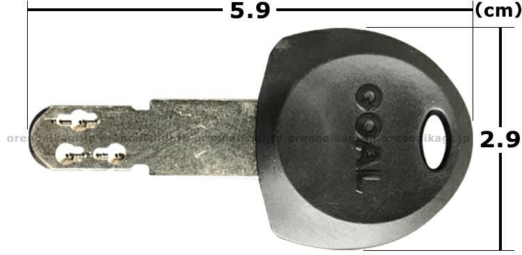 「GOAL D9」とよく似た鍵として「GOAL V18」というものがあります。 違いは鍵穴に差し込む部分の長さを見ると非常に簡単に見分けることができるので下記をご覧ください。 また「D9」の場合、鍵番号が「D」から始まるのでこの点でも見分けることができます。 GOAL D9 = 短い(約1.6cm) GOAL V18 = 長い(約3cm) ※持ち手のデザインは似ていますが、鍵穴にさしこむ部分が全く違います。